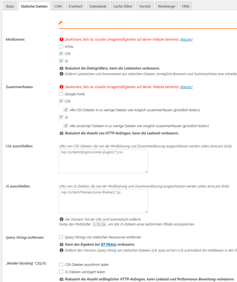 Während Plugins wie W3 Total Cache für den Laien schwer verständlich sind, punktet WP Rocket bereits mit einfachen Settings, die vom Betreiber selbst ausgeführt werden können ohne extra einen Entwickler zu Rate ziehen zu müssen. Die berechtigte Angst, das Design der Seite oder einzelne Elemente könnten zerstört werden, entfällt mit dem WP Rocket nahezu.